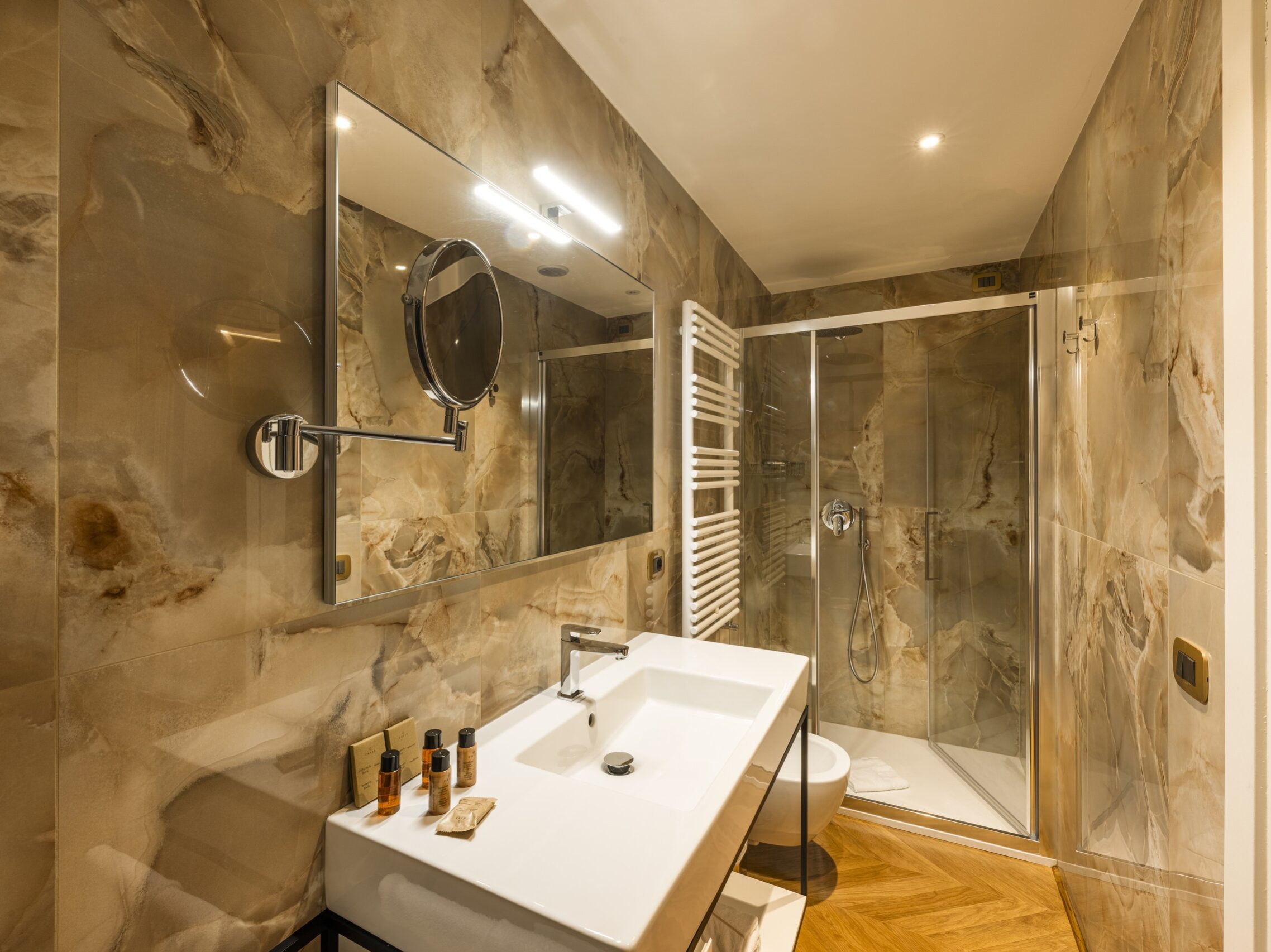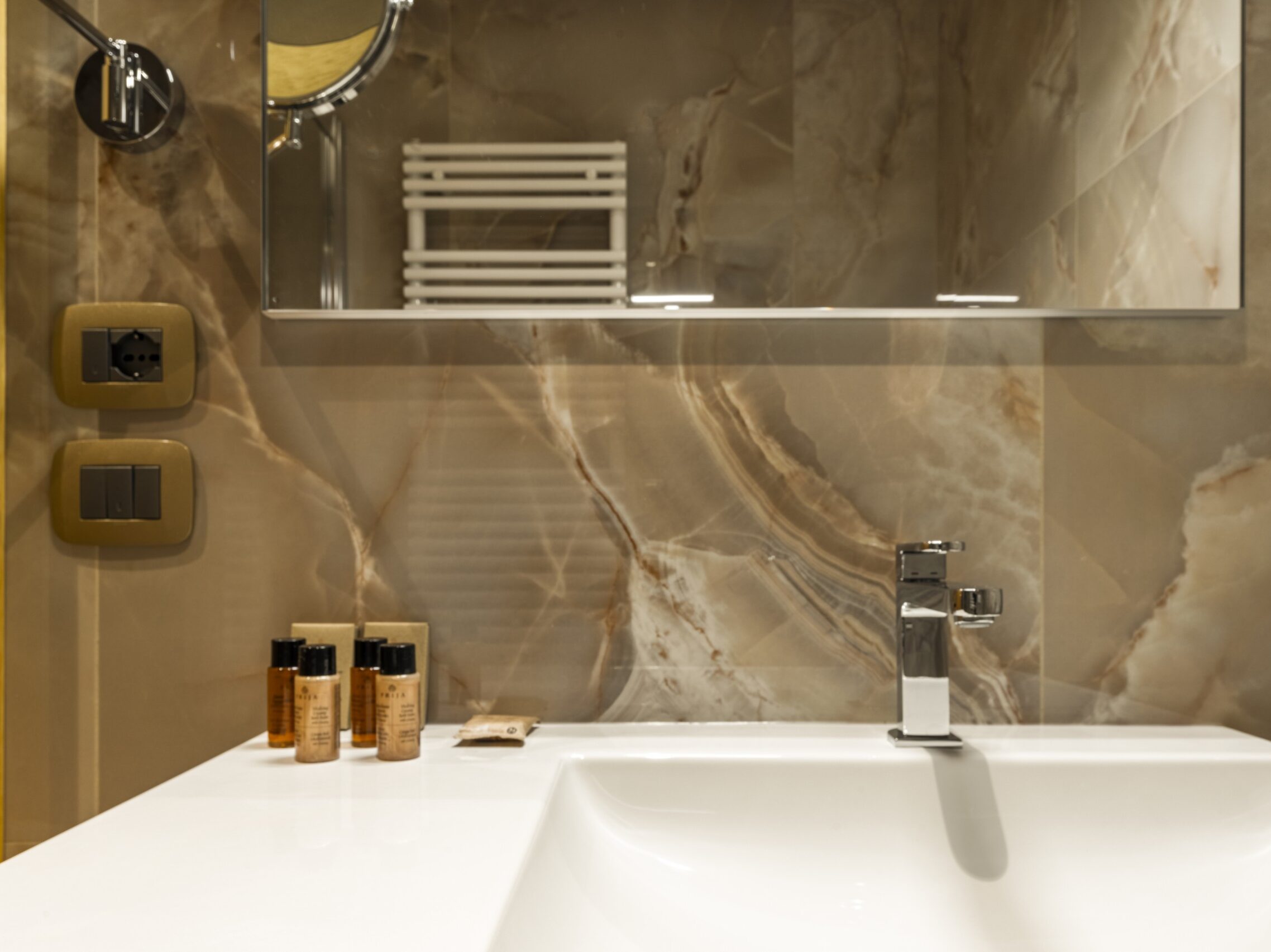 Ciascuna stanza di Palazzo dei Mori ha il bagno privato, con tutte le comodità dei migliori alberghi di Venezia, complete di minibar con Tv Lcd satellitare, connessione WiFi gratuito, prese usb e ubs/c di ultima generazione, minibar e cassette di sicurezza, set di cortesia e asciugacapelli professionale.