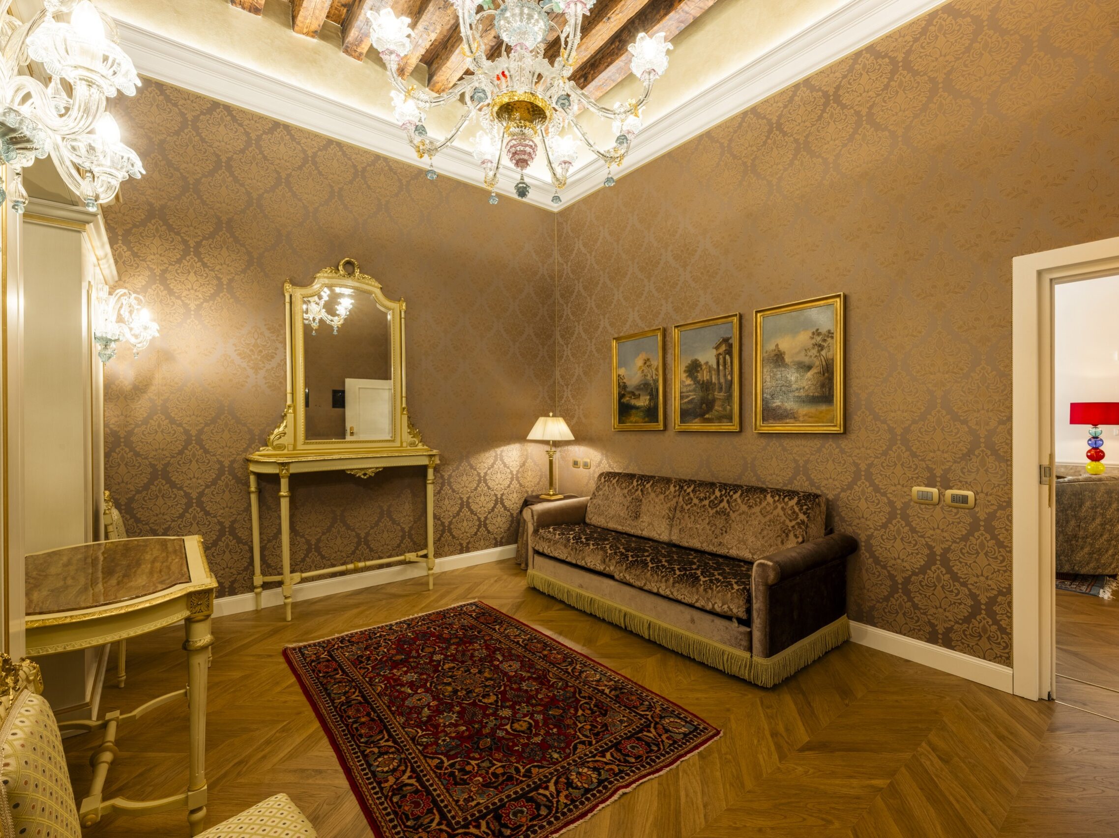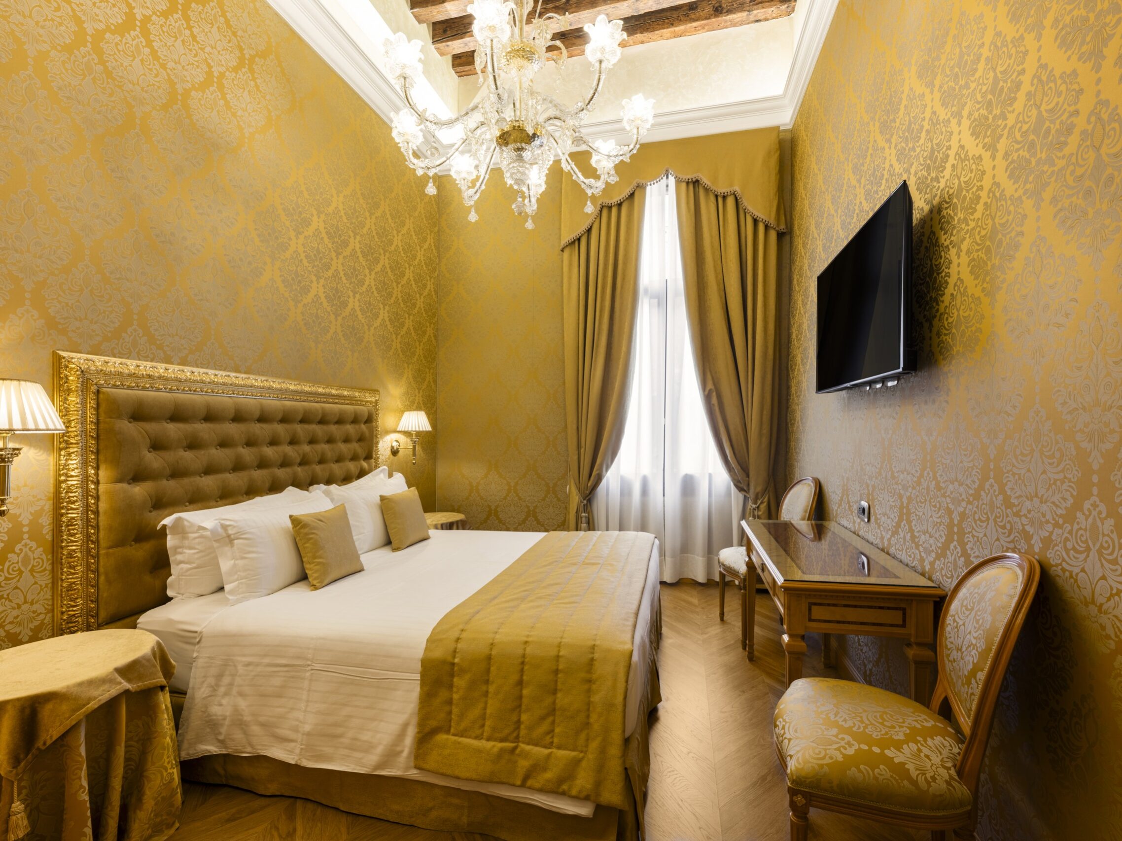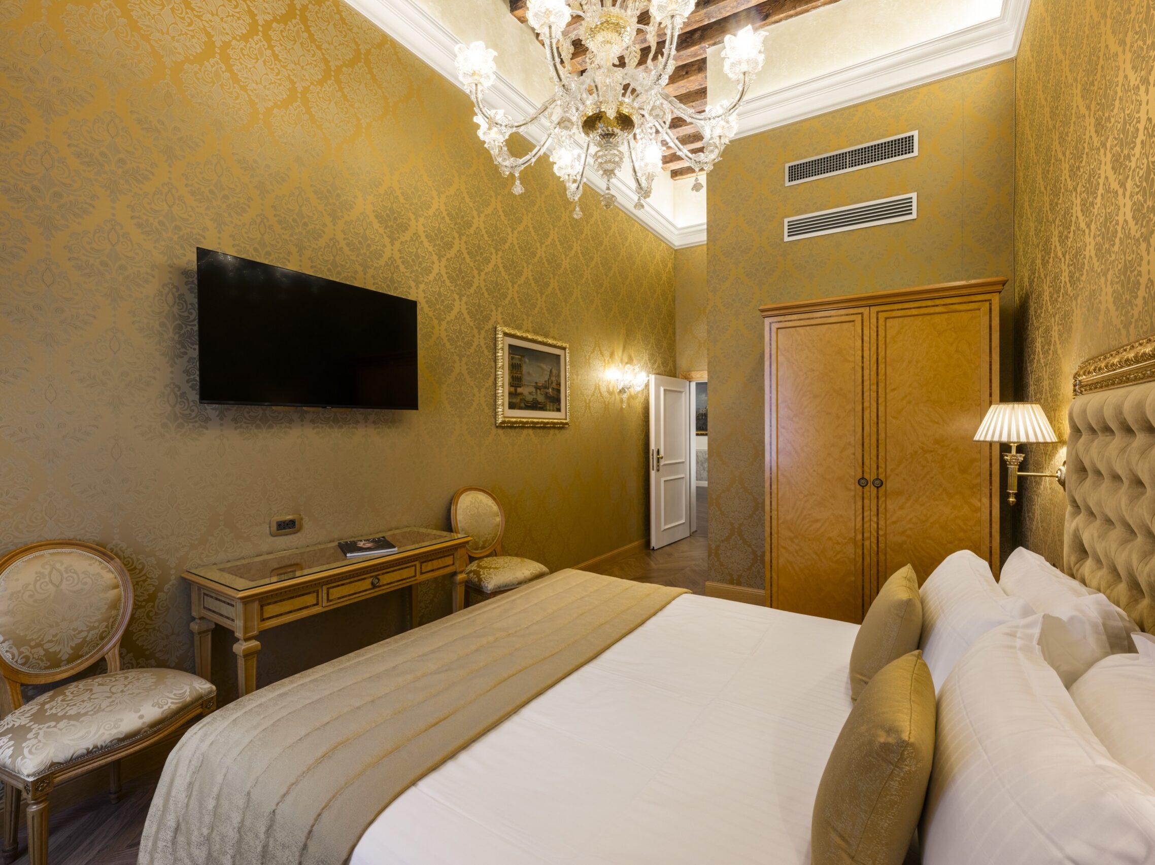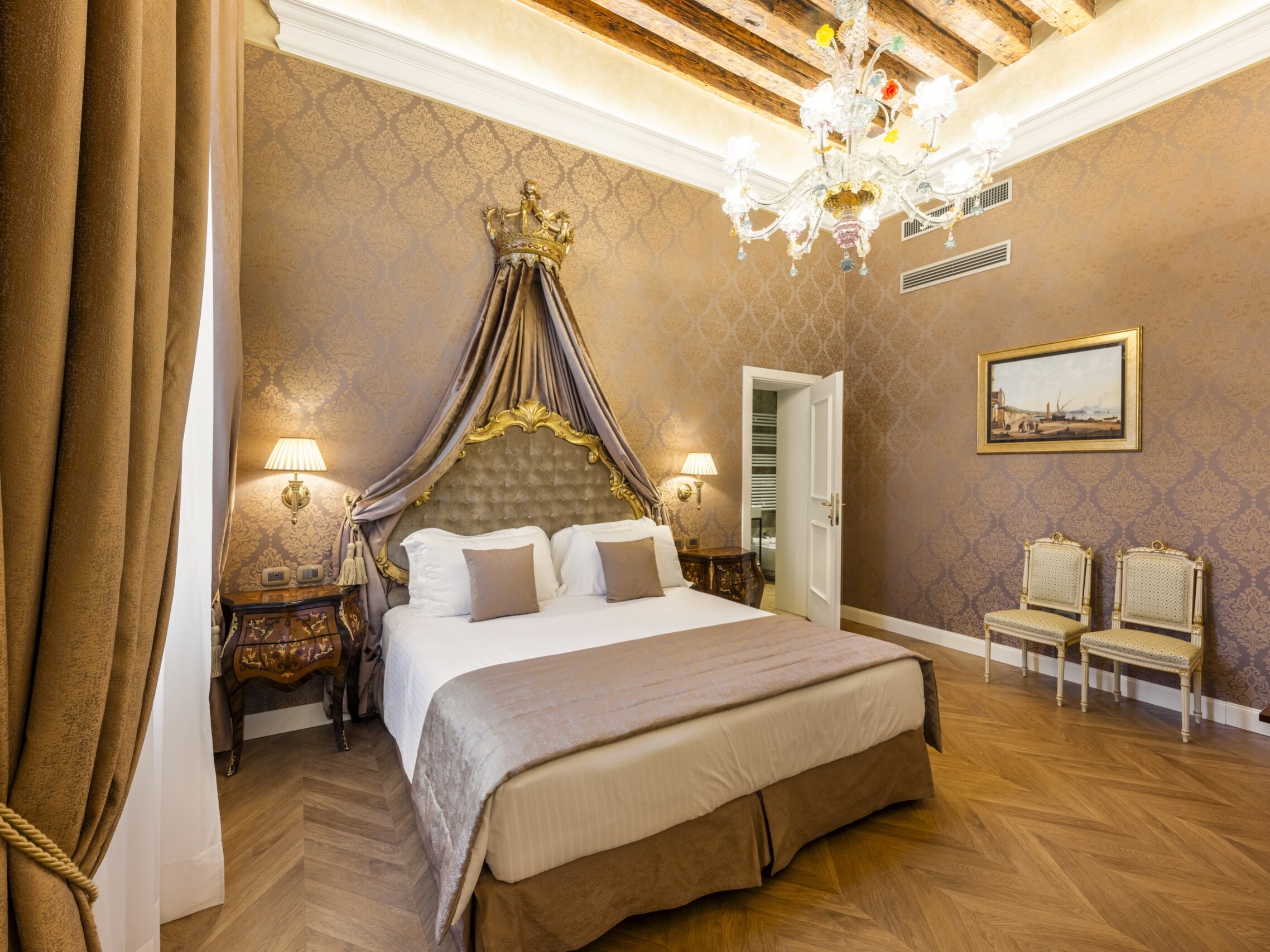 Palazzo dei Mori dispone di camere arredate in stile Veneziano disposte a lato del salone centrale, con tutti i comfort moderni